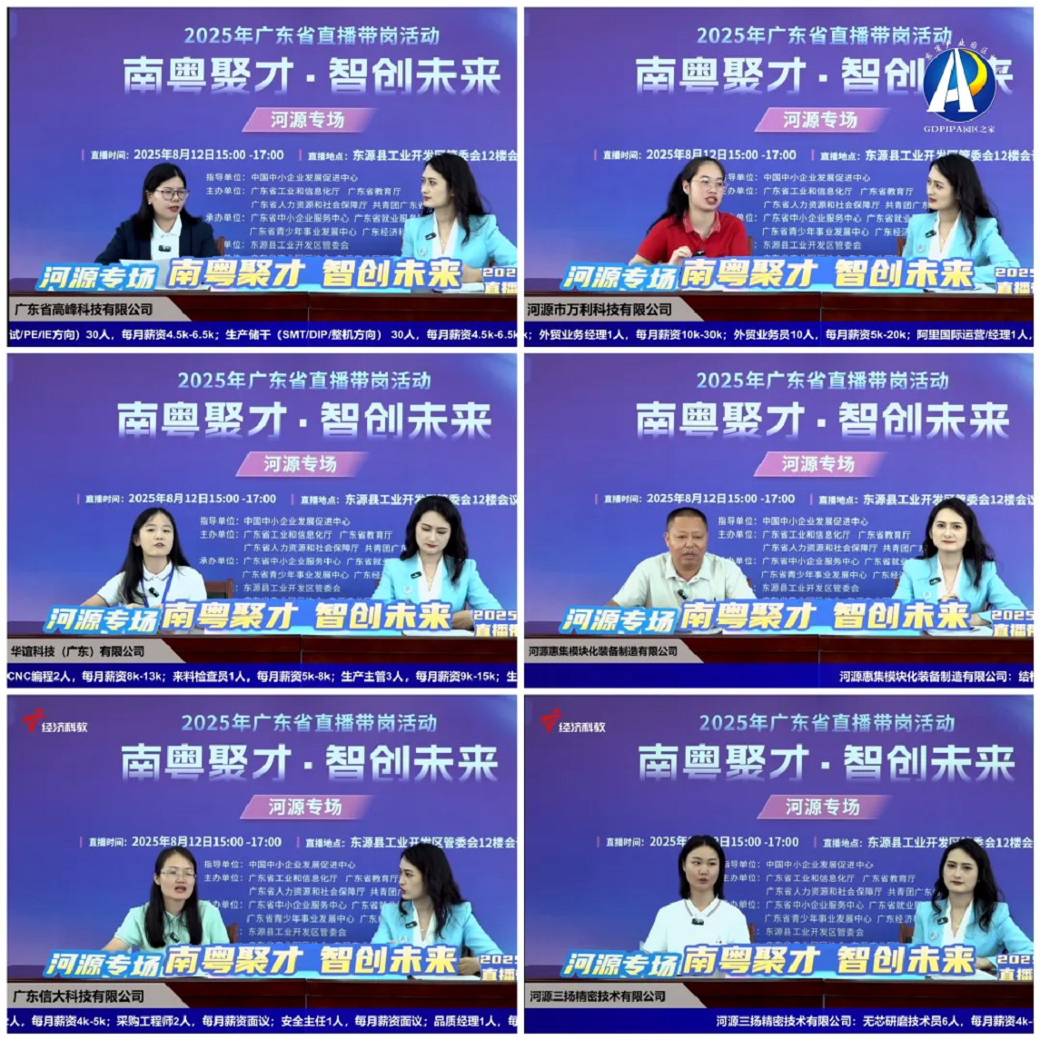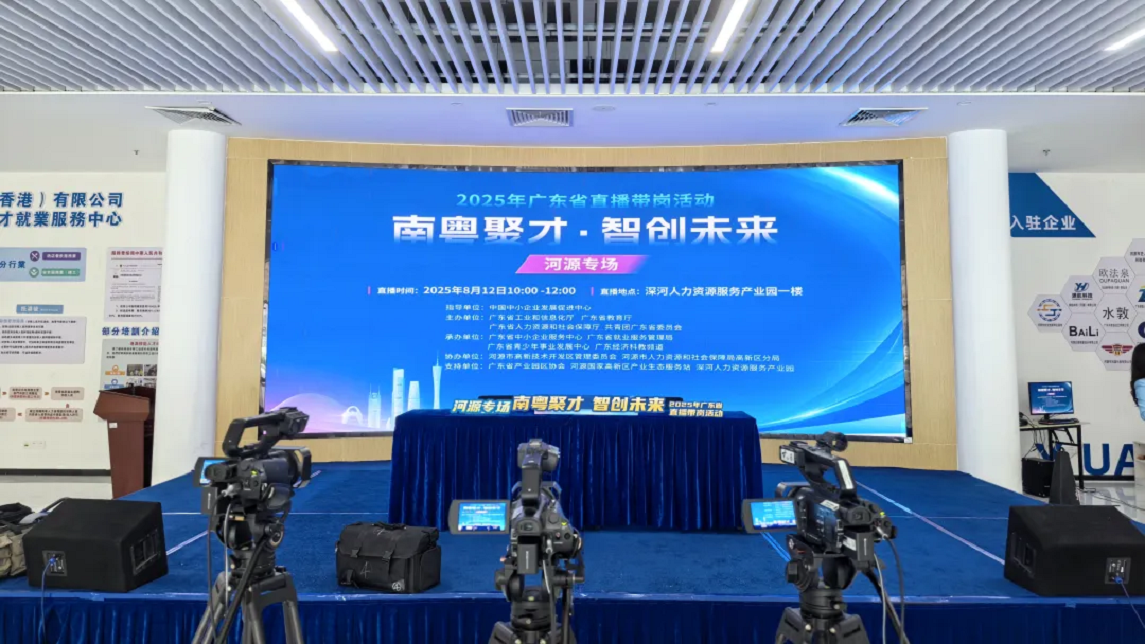 8月12日,“南粵聚才 智創(chuàng)未來”2025年廣東省直播帶崗活動(河源專場)成功舉辦,超1600個就業(yè)崗位線上招聘,共計觀看量達43萬余人次。